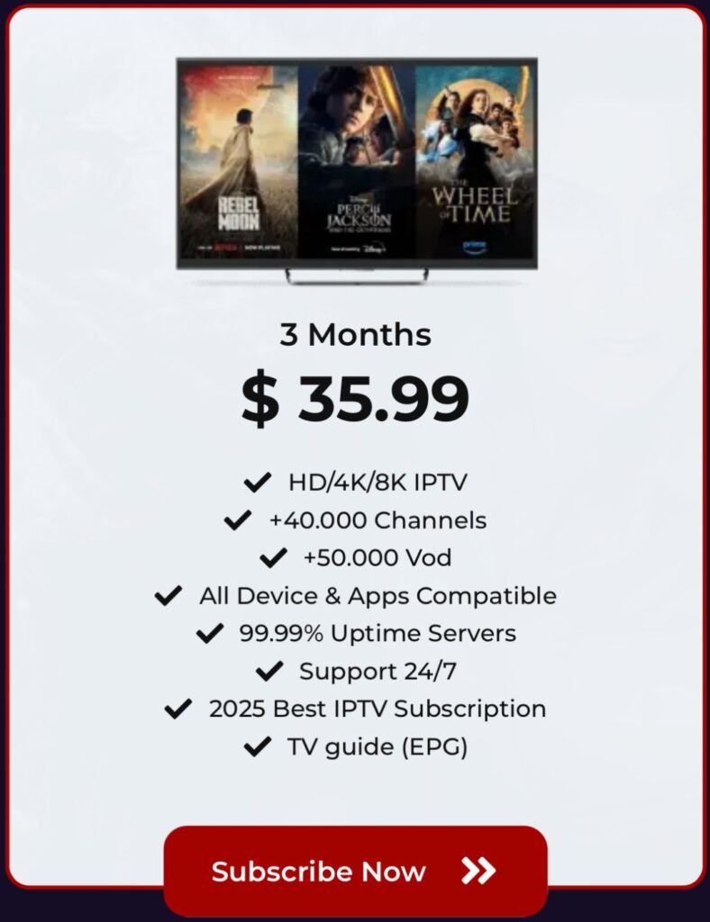 IPTV stands for Internet Protocol Television. It is a modern way of watching TV channels using the internet instead of traditional cable or satellite systems. With IPTV, users can stream live TV, movies, and series directly on smart TVs, mobile phones, laptops, or IPTV boxes.